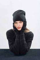 Jumper 1234 cashmere hat. Cashmere ribbed beanie in black, available in 5 colours with matching gloves with or without fingers too!