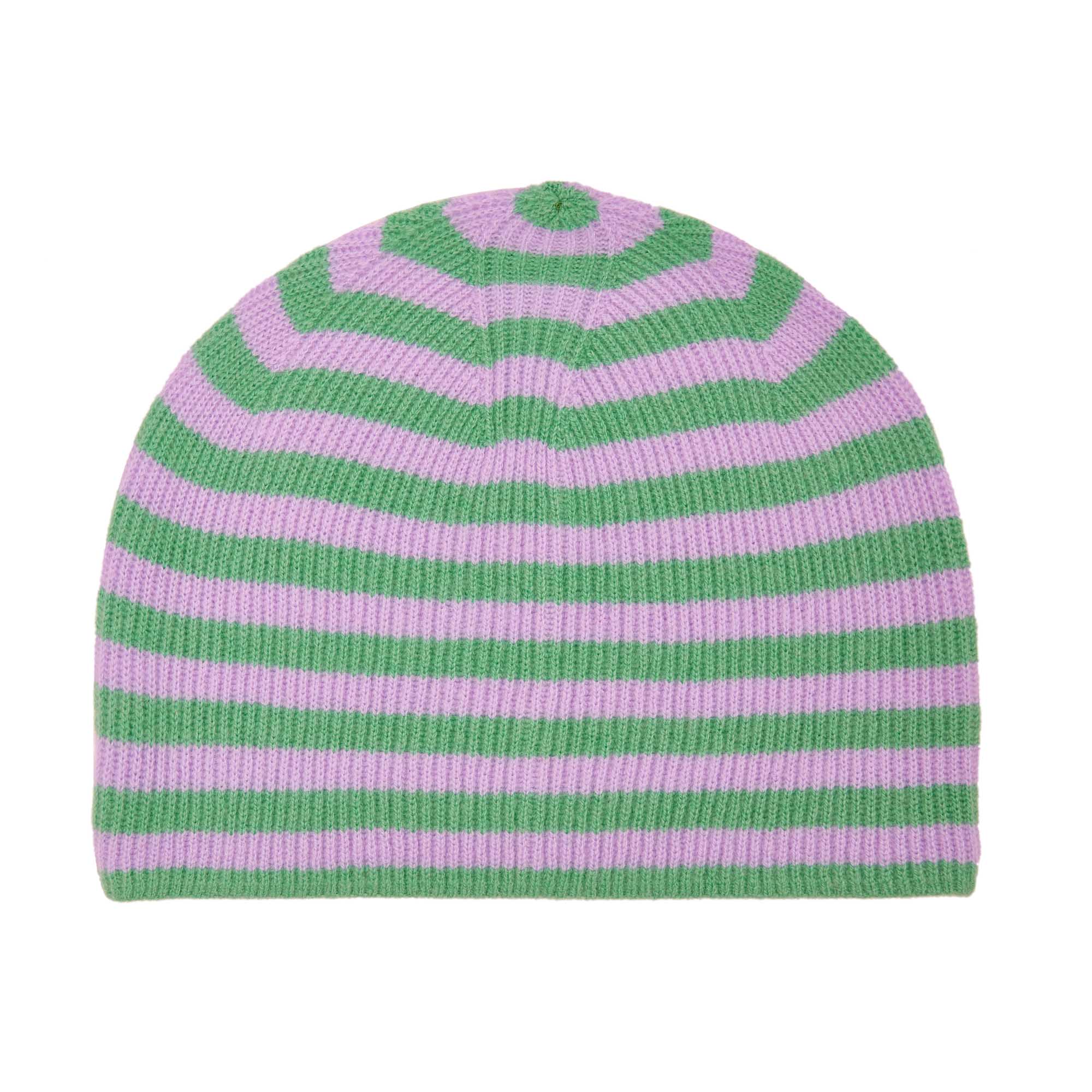Cashmere Stripe Rib Beanie in Green and Lilac