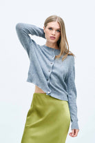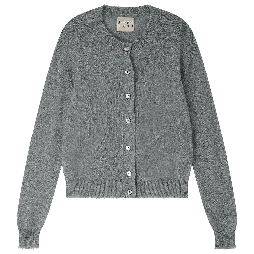 Jumper 1234 cashmere cardigan. Mid grey cashmere crew neck cardigan with 'distressed' ribs. Another new additions to our 'distressed' offer, available in 8 colours with matching tanks too. It's true to size and even if we say so ourselves a great update to a classic cardigan! Part of our core collection, those jumpers and cardigans in plain and stripe that you also need, but can't always find!