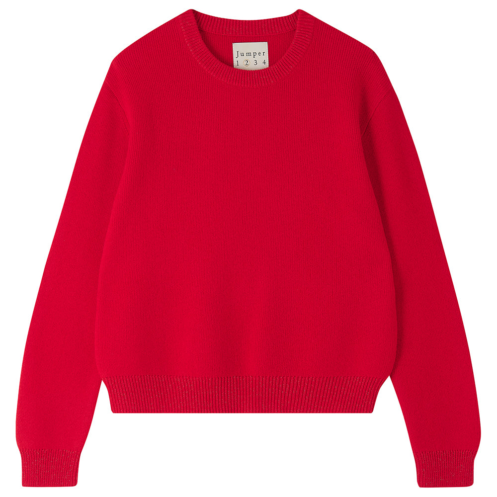 Jumper 1234 cashmere wool jumpers. Cashmere and wool heavier weight crew neck jumper in red with lurex running through the ribs. True to size and there are matching socks available too and there's a choice of 8 colours!!!