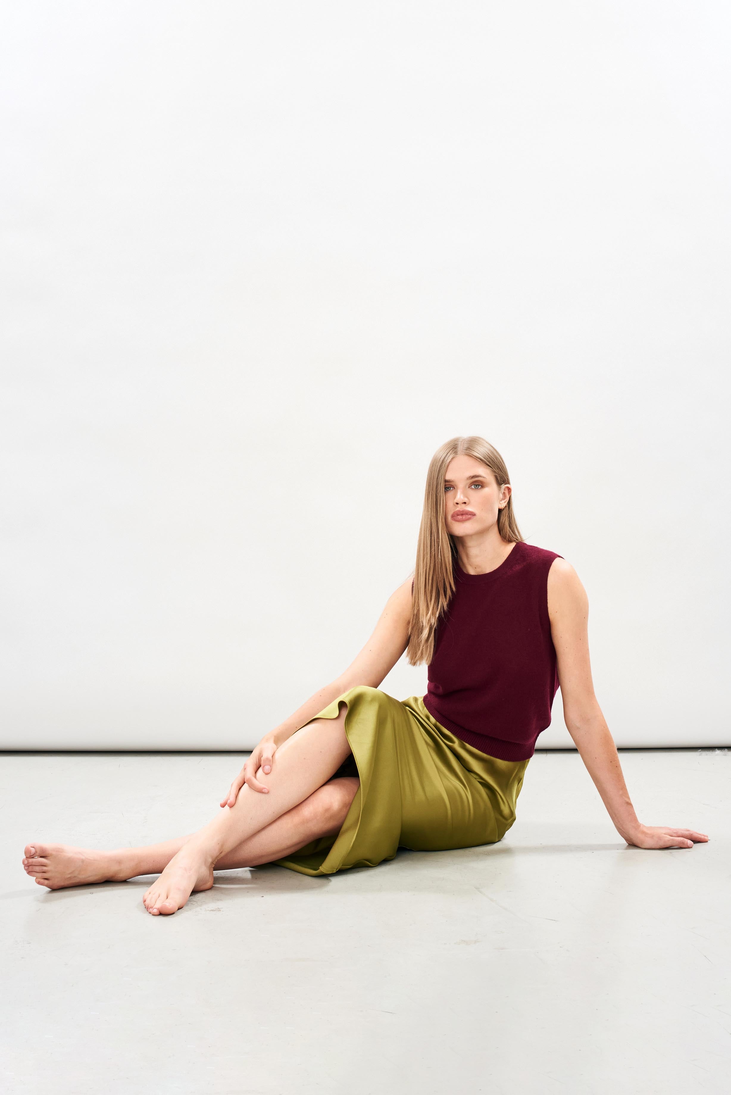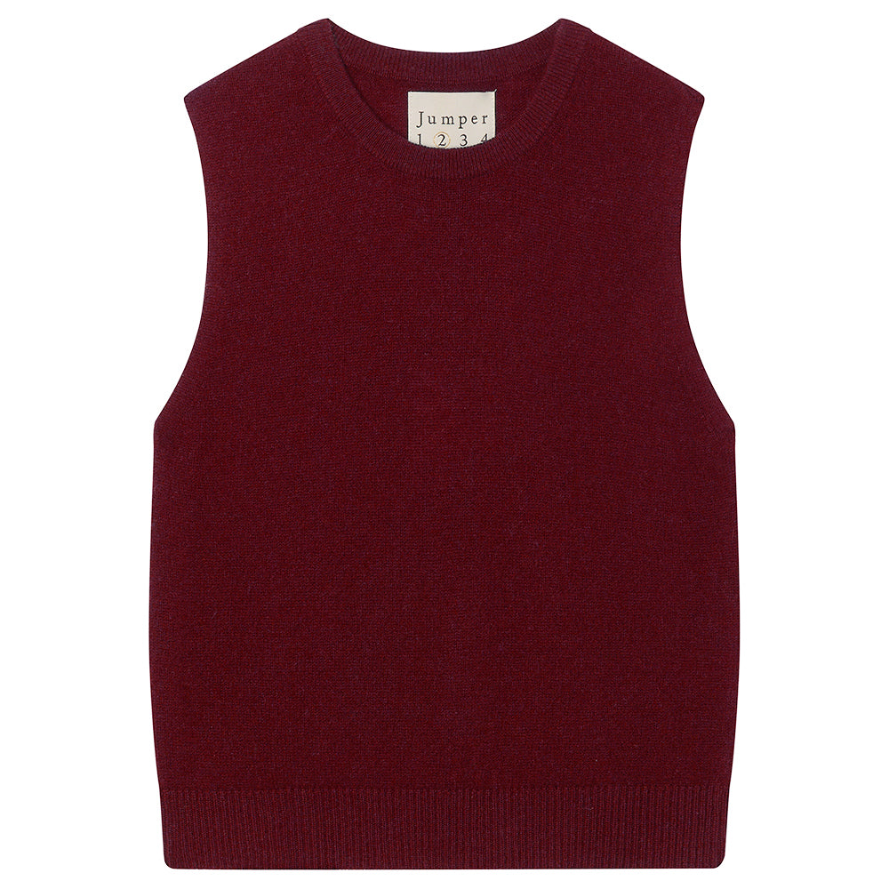 Jumper 1234 cashmere jumper. Burgundy cashmere sleeveless crew neck tank with matching 'perfect' cardigan available too. There are 5 colours and it's part of our core collection, those jumpers and cardigans in plain and stripe that you always need, but can't always find!