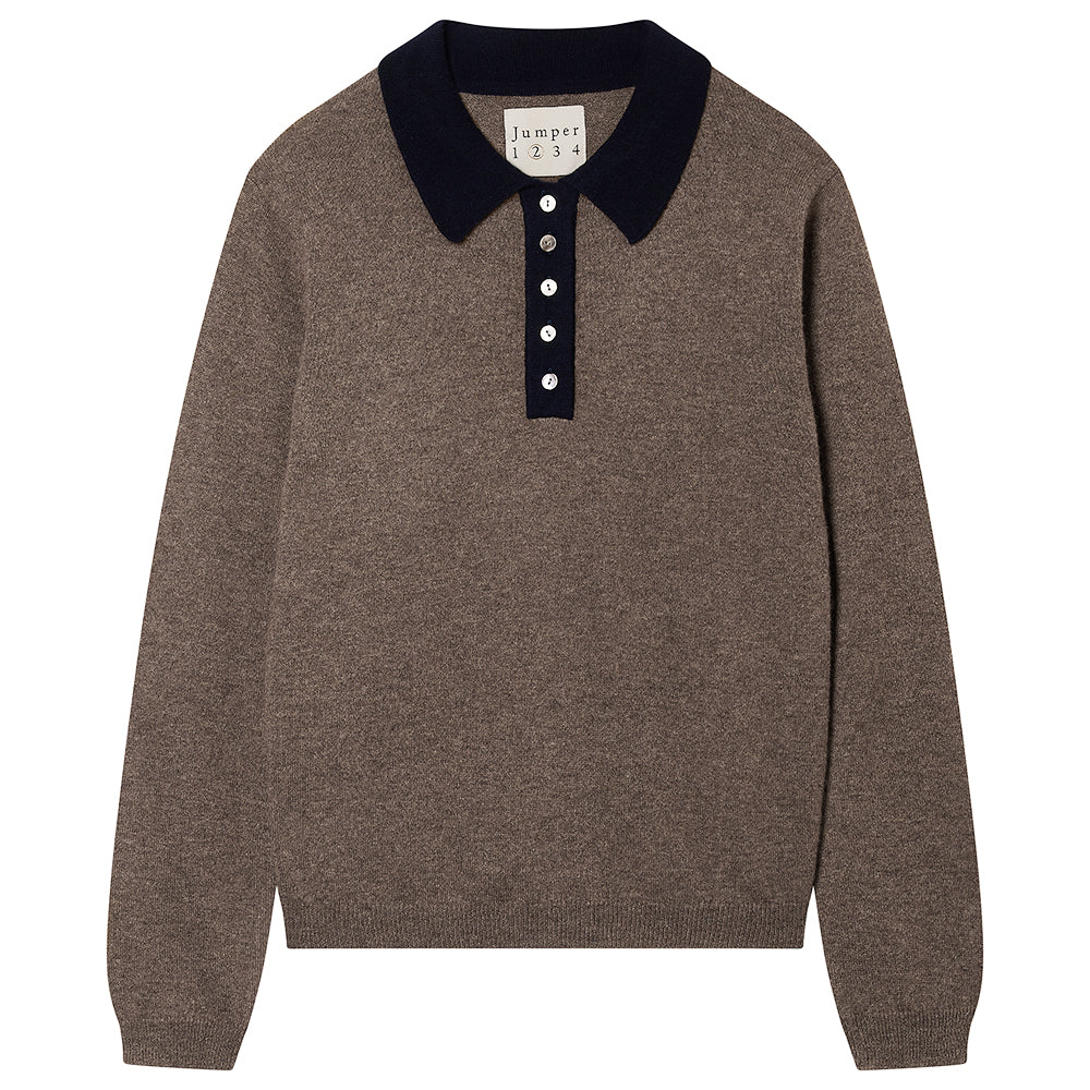 Jumper 1234 cashmere jumper. Moose cashmere polo shirt with a contrast navy collar. True to size and also available in mid grey and black.