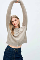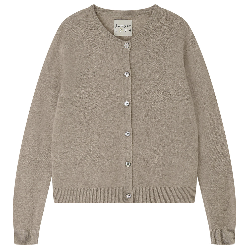 Jumper 1234 cashmere cardigan. Organic light brown lighter weight cashmere cardigan, also known in our office as the 'perfect' cardigan. We know this will be our go to cardigan again this season, true to size and available in a mere 5 colours. It looks great worn with the perfect tank too if you're craving a twinset, as we are!. Part of our core collection, those jumpers and cardigans in plain and stripe that you always need, but can't always find!