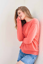 Cashmere Distressed Crew in Coral