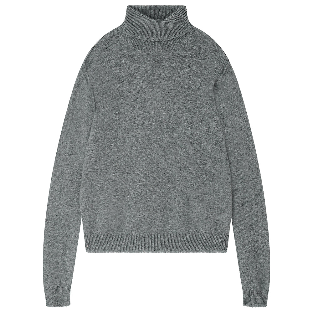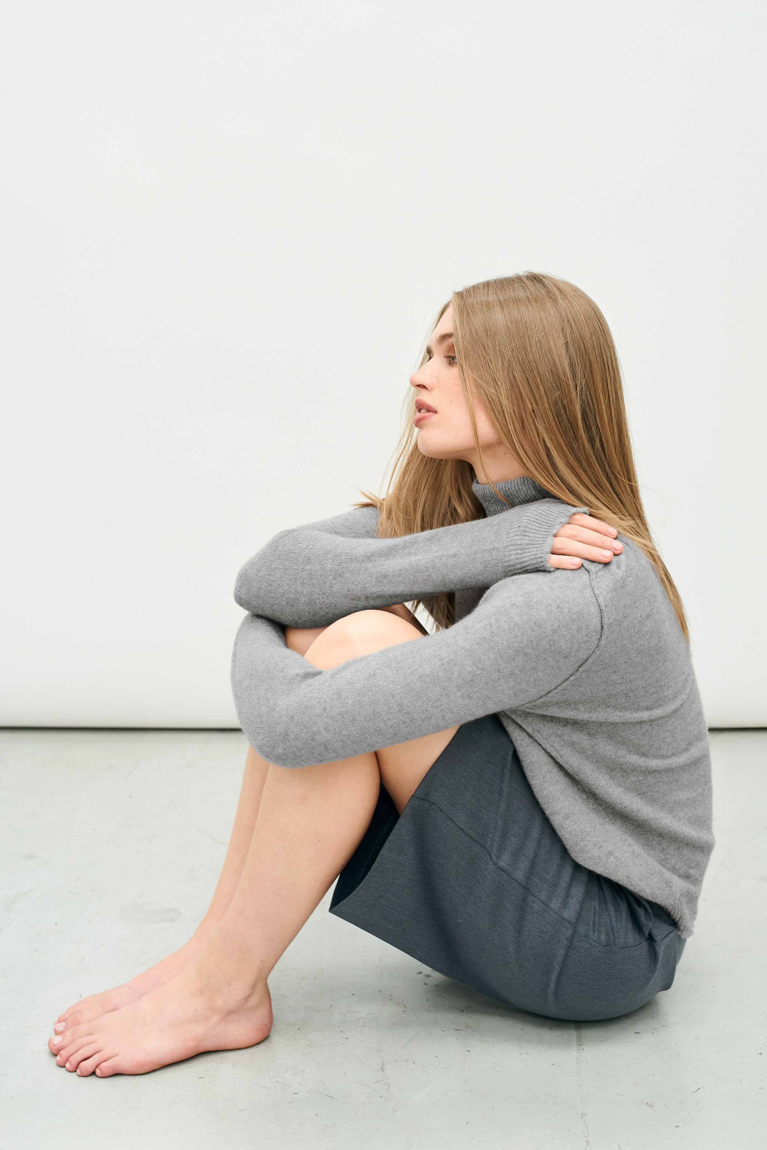 Jumper 1234 cashmere jumper. Mid grey cashmere roll collar with 'distressed' ribs. We are obsessed with this new style, based on our best selling 'distressed' crew neck but updated for autumn winter with a roll collar, we are so obsessed in fact that we needed to offer it in 12 colours. It's true to size and part of our core collection, those jumpers and cardigans in plain and stripe that you always need, but can't always find!