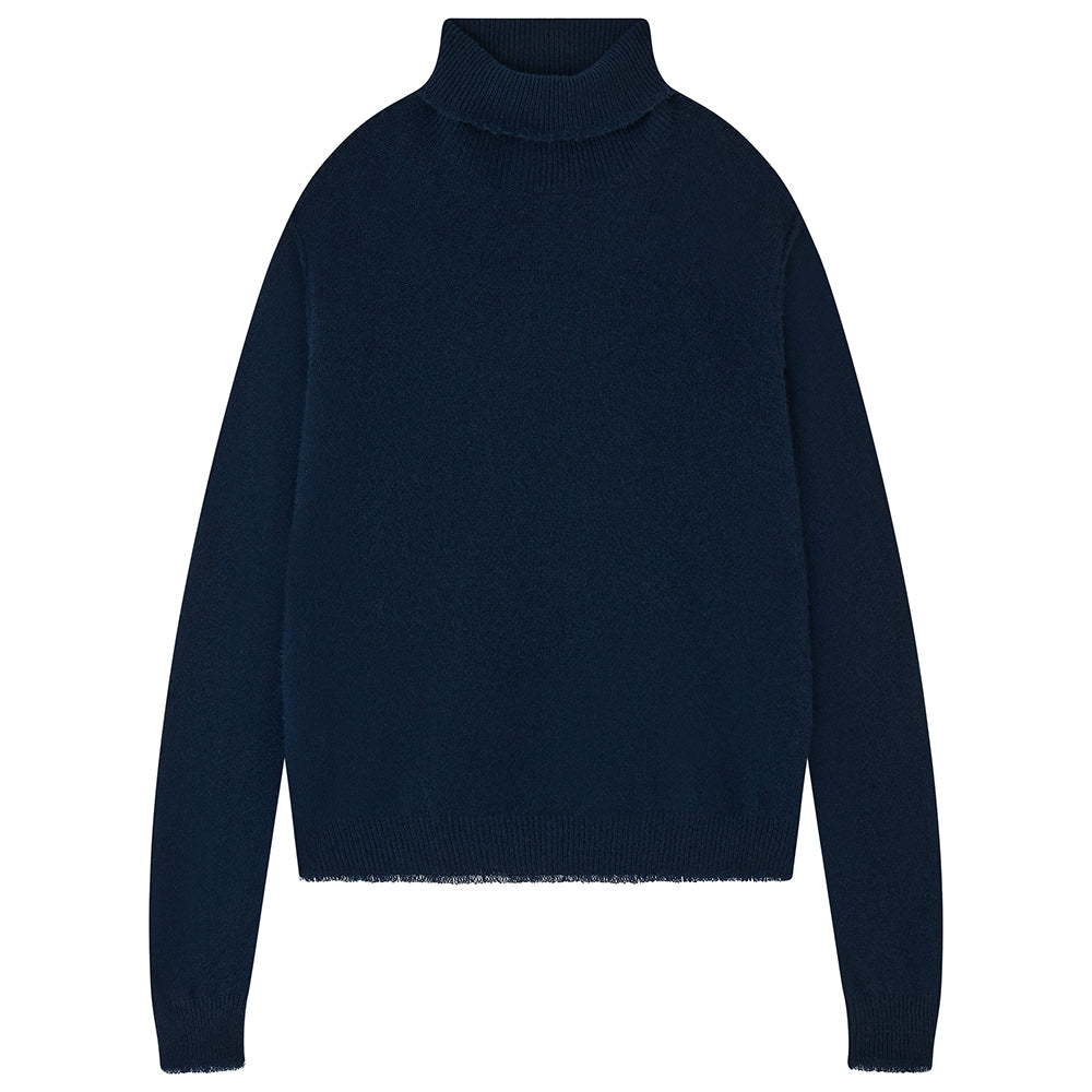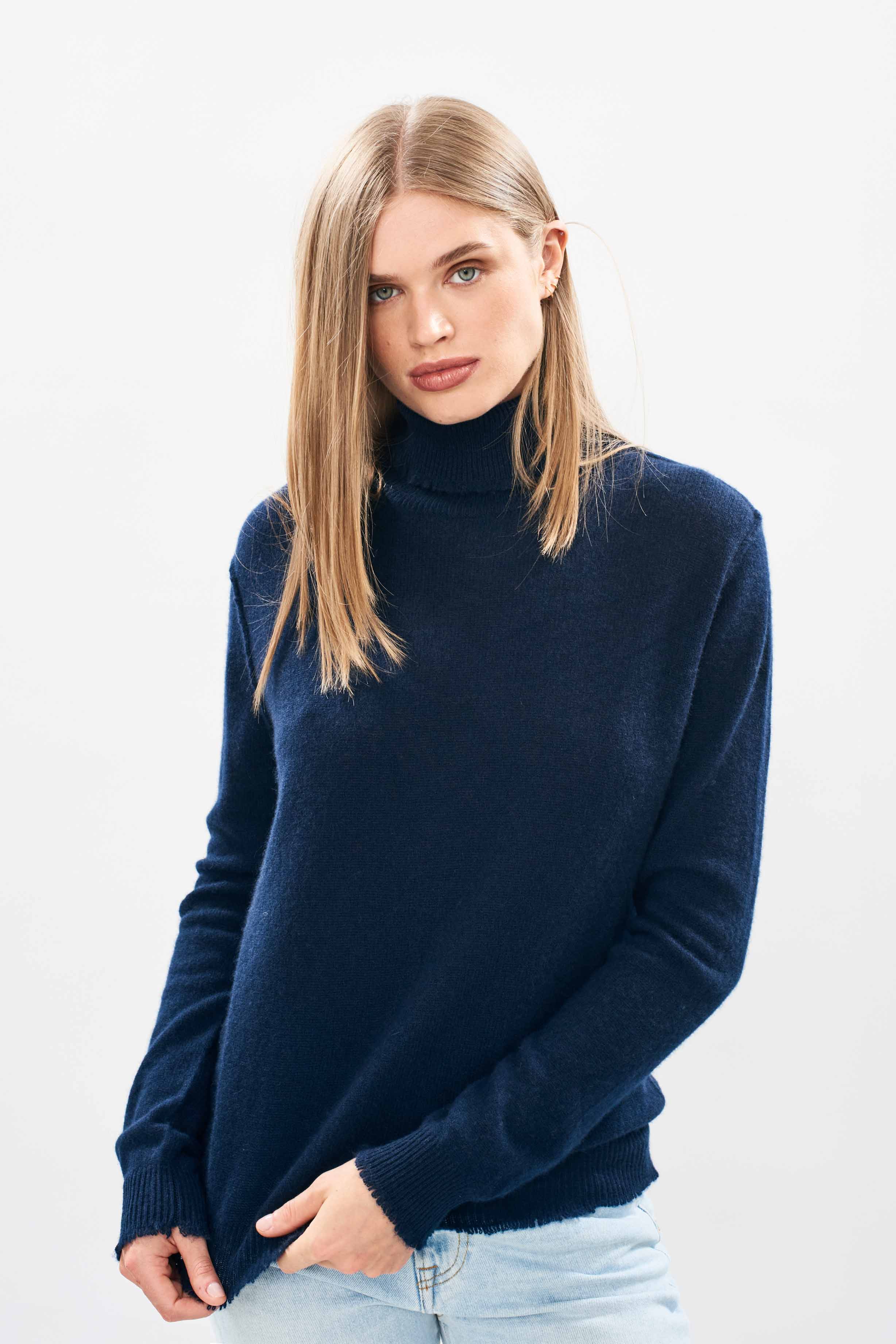 Jumper 1234 cashmere jumper. Navy cashmere roll collar with 'distressed' ribs. We are obsessed with this new style, based on our best selling 'distressed' crew neck but updated for autumn winter with a roll collar, we are so obsessed in fact that we needed to offer it in 12 colours. It's true to size and part of our core collection, those jumpers and cardigans in plain and stripe that you always need, but can't always find!