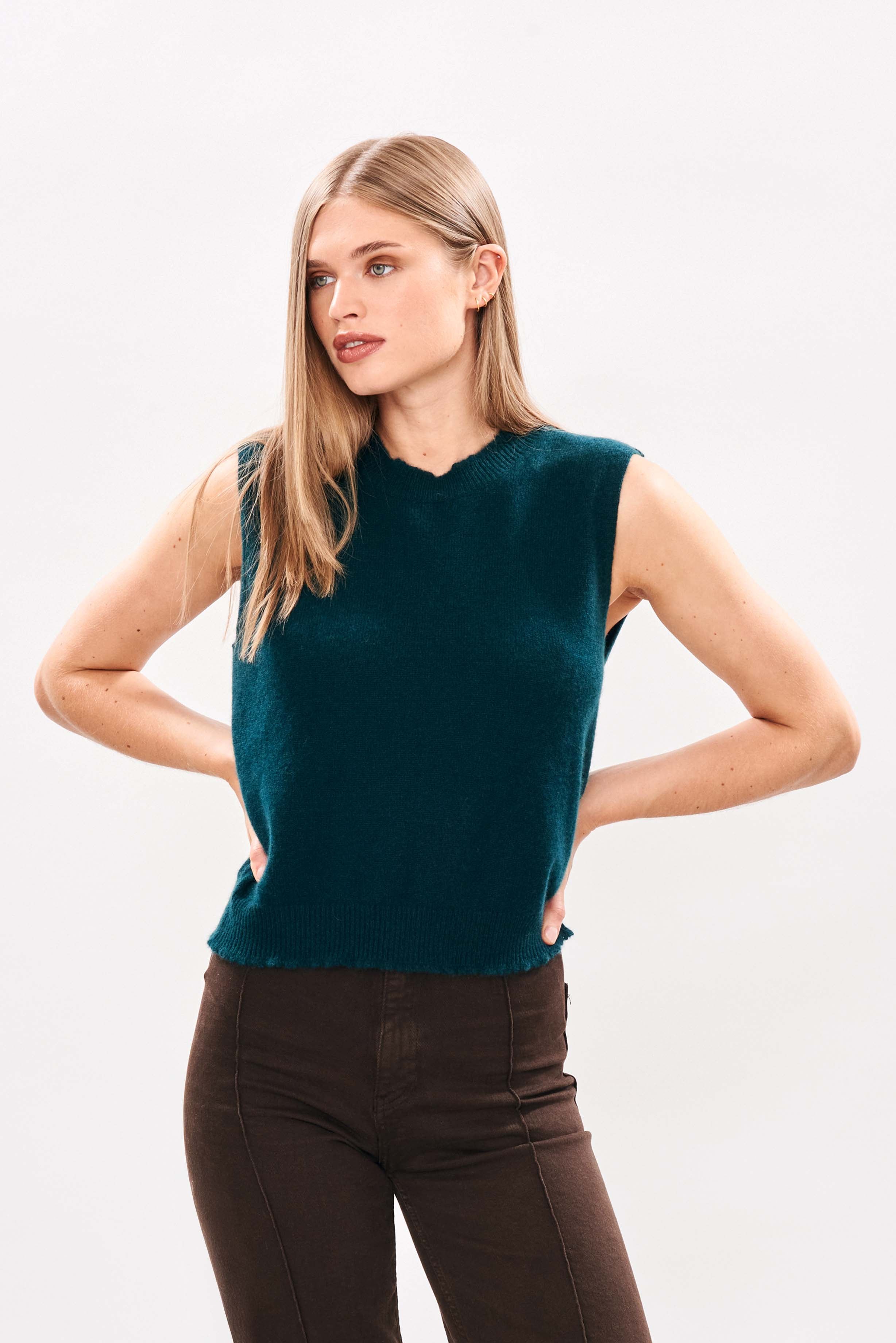 Jumper 1234 cashmere jumper. Bottle green cashmere crew neck tank with 'distressed' ribs. Our best seller, back in 8 new colours for autumn winter, and this time there are matching 'distressed' cardigans too. Heaven in a twinset? Oh and it's true to size! Part of our core collection, those jumpers and cardigans in plain and stripe that you always need, but can't always find!