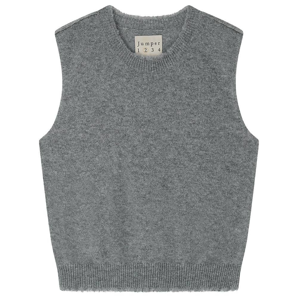 Jumper 1234 cashmere jumper. Mid grey cashmere crew neck tank with 'distressed' ribs. Our best seller, back in 8 new colours for autumn winter, and this time there are matching 'distressed' cardigans too. Heaven in a twinset? Oh and it's true to size! Part of our core collection, those jumpers and cardigans in plain and stripe that you always need, but can't always find!