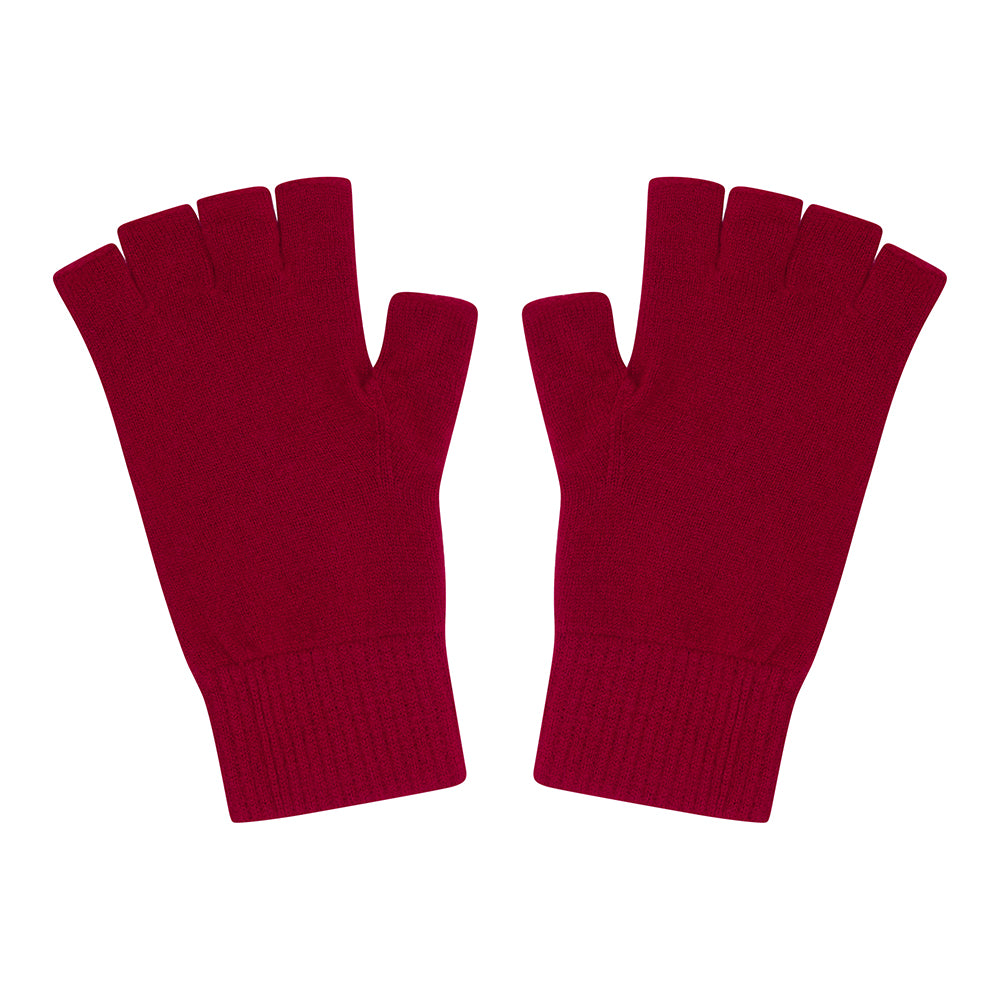 Jumper 1234 cashmere gloves. Dark red fingerless cashmere gloves, available in 5 colours. A choice of matching hats too.