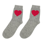 Jumper 1234 cashmere socks. Mid grey 'bed' socks with red intarsia hearts. Softest socks in the world but don't wear them with your shoes! One size and 8 other fabulous colour ways available. Wear your heart on your socks!!! Matching jumper available!