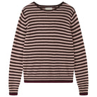 Cashmere Tipped Little Stripe Crew in Dark Brown, Pink and Burgundy