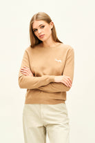 Jumper 1234 cashmere jumper. Camel cashmere crew neck jumper with cream 'naughty' chain stitch embroidery on the chest and 'but nice' on the back. We love rhis jumper so much and just couldn't cut down the colour options, so have offered it in all 6! Oh and its also true to size.