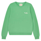 Jumper 1234 cashmere jumper. Green cashmere crew neck jumper with cream 'naughty' chain stitch embroidery on the chest and 'but nice' on the back. We love this jumper so much and just couldn't cut down the colour options, so have offered it in all 6! Oh and its also true to size.