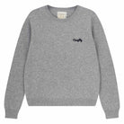 Jumper 1234 cashmere jumper. Mid grey cashmere crew neck jumper with navy 'naughty' chain stitch embroidery on the chest and 'but nice' on the back. We love this jumper so much and just couldn't cut down the colour options, so have offered it in all 6! Oh and its also true to size.