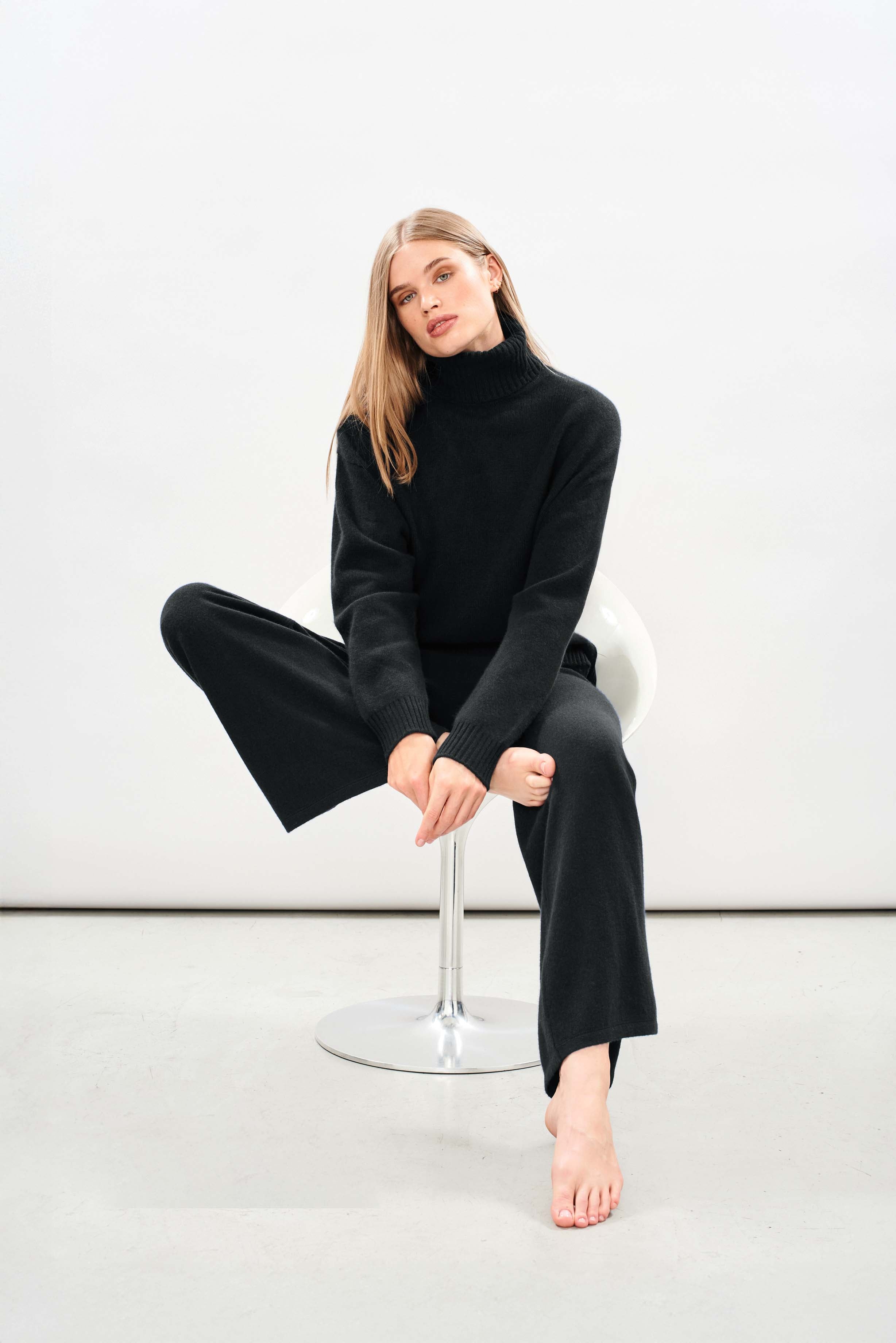 Jumper 1234 cashmere jumper. Black oversized, heavier weight, cashmere roll neck. Slightly longer at the back, available in 8 colours! One of our favourite jumpers, we all live in these all winter long. Part of our core collection, those jumpers and cardigans in plain and stripe that you also need, but can't always find!