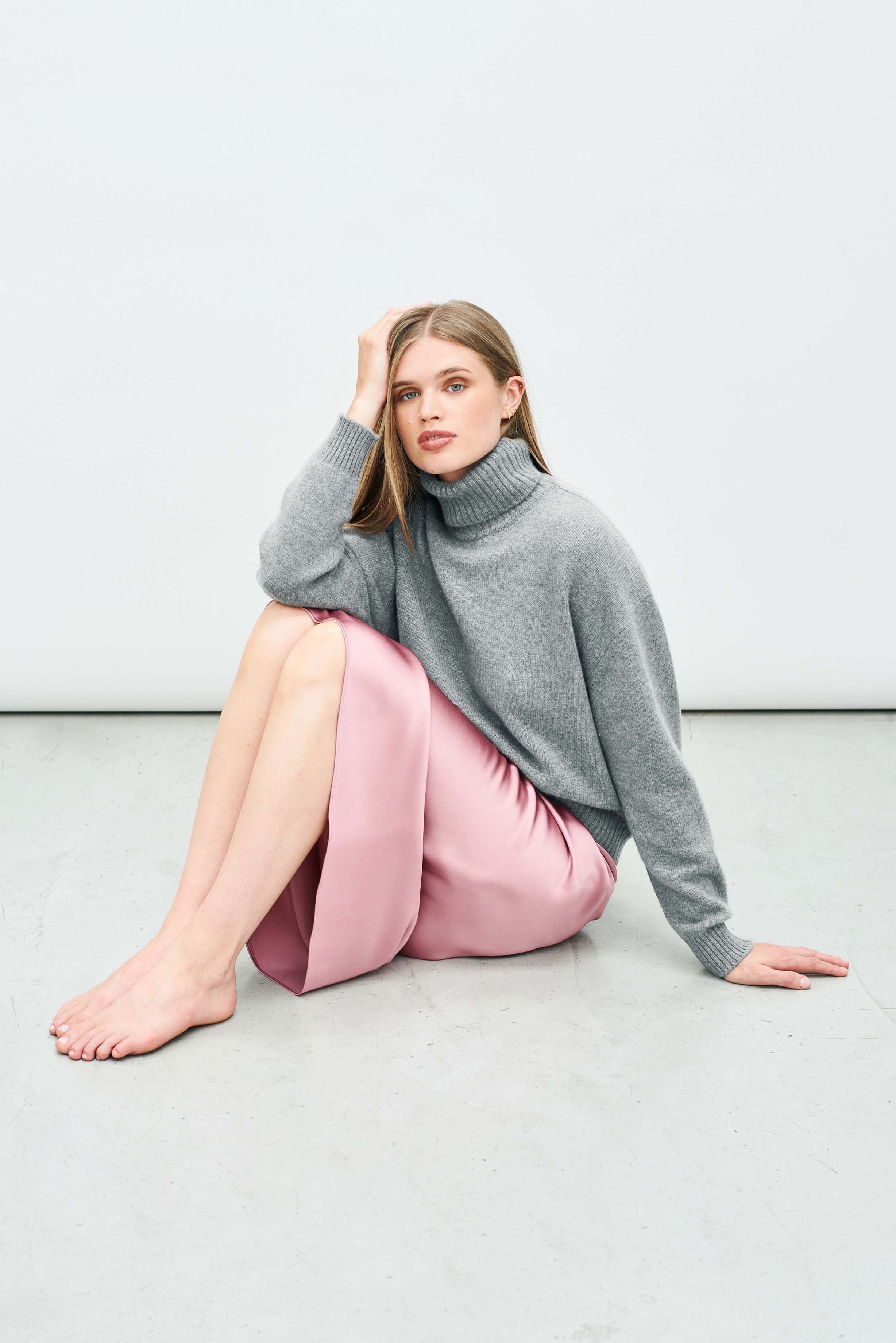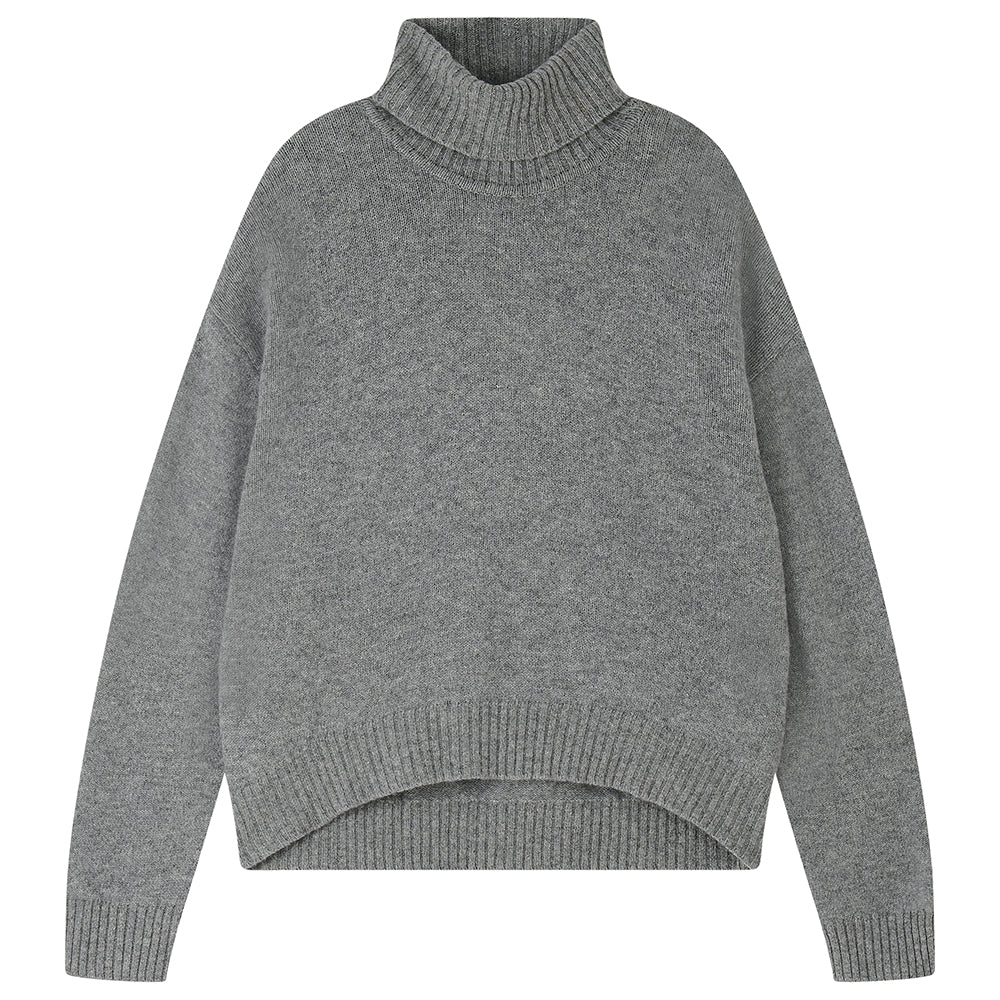 Jumper 1234 cashmere jumper. Mid grey oversized, heavier weight, cashmere roll neck. Slightly longer at the back, available in 8 colours! One of our favourite jumpers, we all live in these all winter long. Part of our core collection, those jumpers and cardigans in plain and stripe that you also need, but can't always find!