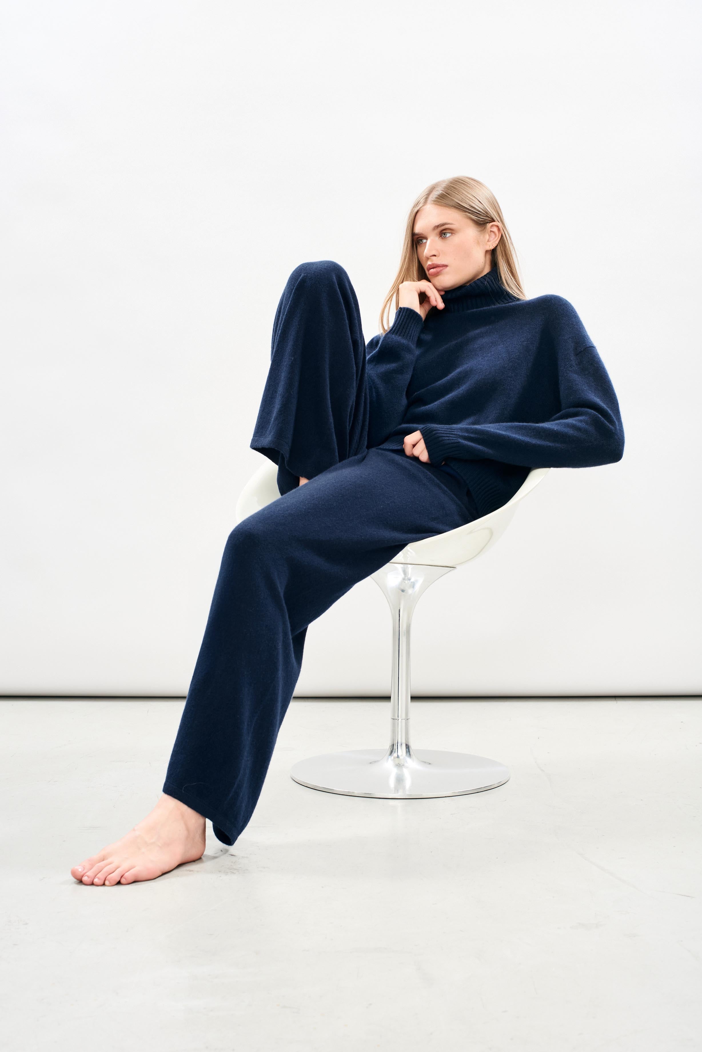 Cashmere Oversize Roll Collar in Navy