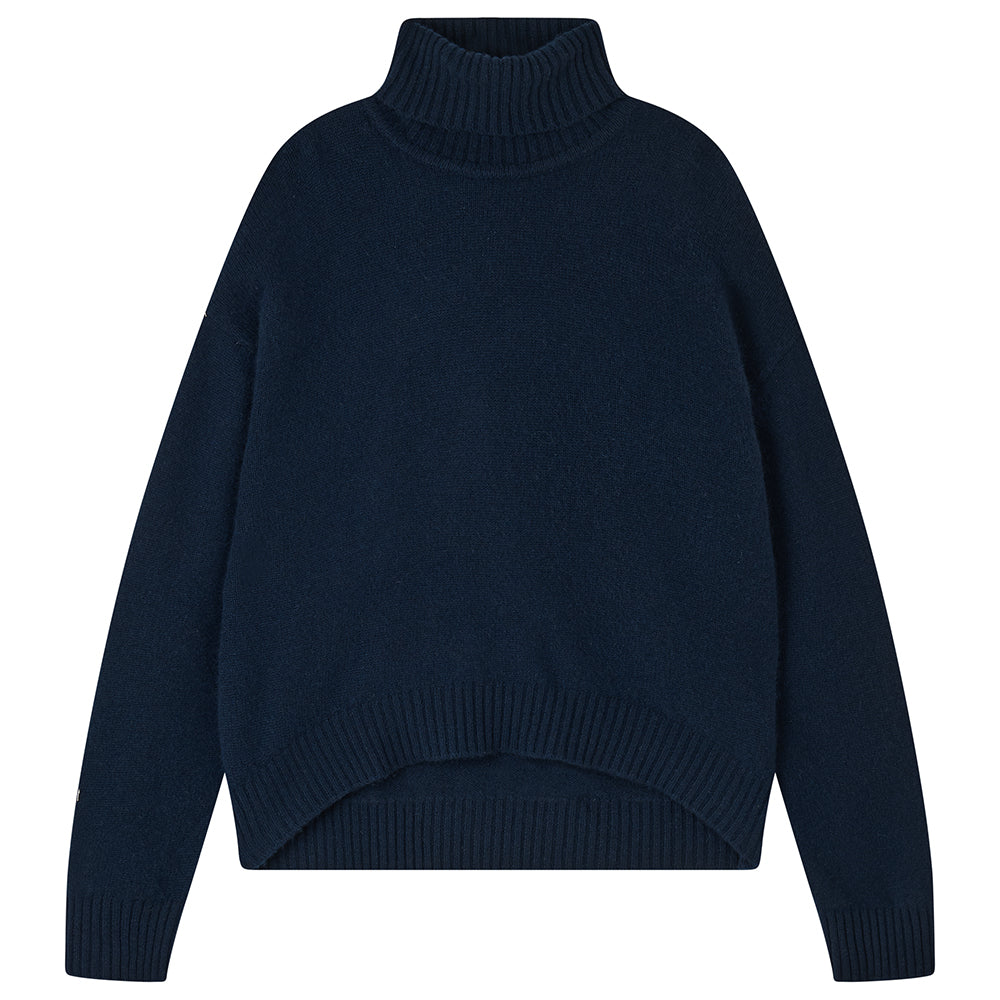 Jumper 1234 cashmere jumper. Navy oversized, heavier weight, cashmere roll neck. Slightly longer at the back, available in 8 colours! One of our favourite jumpers, we all live in these all winter long. Part of our core collection, those jumpers and cardigans in plain and stripe that you also need, but can't always find!