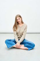 Cashmere Raglan Vee Neck in Organic Light Brown