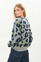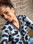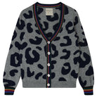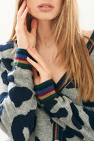 Cashmere Rainbow Leopard Cardigan in Mid Grey and Navy