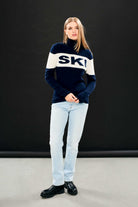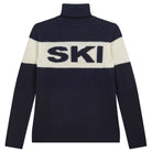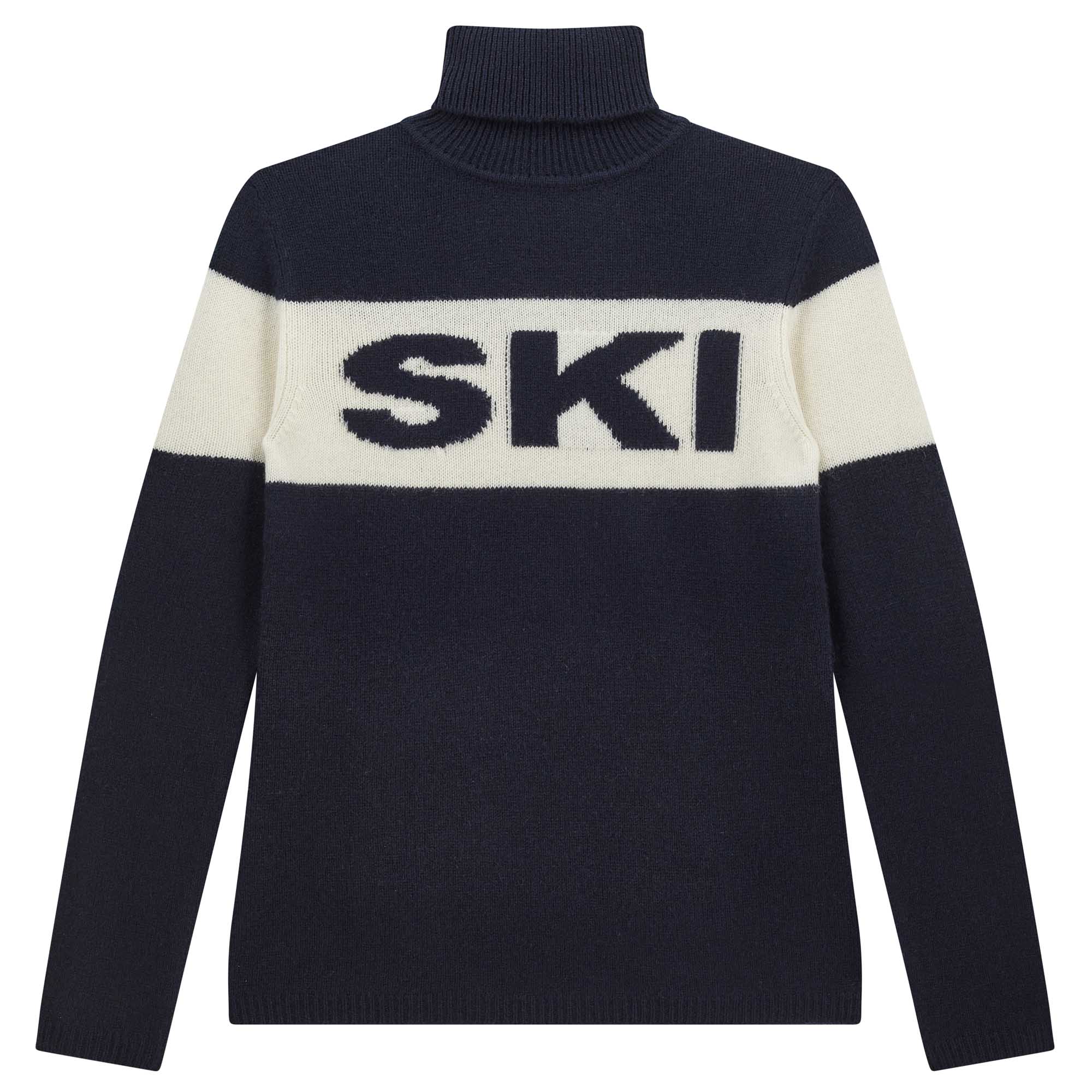 Jumper 1234 cashmere jumper. Navy heavier weight cashmere roll neck jumper with a cream stripe and navy SKI jacquard. Also available in red, it's true to size and back by very popular demand!