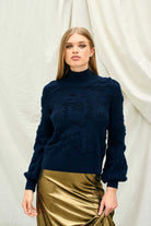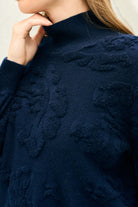 Jumper 1234 cashmere jumper. Cashmere turtle neck jumper in navy, with all over 3d floral jacquard pattern. A tricky one to describe but it's realy fabulous. It's true to size, with slight balloon sleeves and also comes in stone.