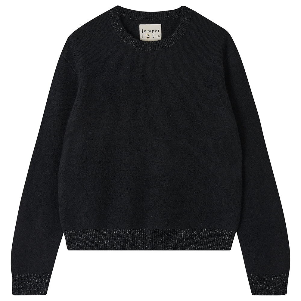Jumper 1234 cashmere wool jumpers. Cashmere and wool heavier weight crew neck jumper in black with silver lurex running through the ribs. True to size and there are matching socks available too and there's a choice of 8 colours!!!