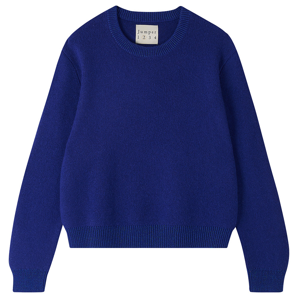 Jumper 1234 cashmere wool jumpers. Cashmere and wool heavier weight crew neck jumper in bright blue with lurex running through the ribs. True to size and there are matching socks available too and there's a choice of 8 colours!!!