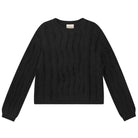 Cashmere Wool Raw Cut Cable Crew in Black