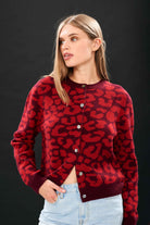 Merino Leopard Crew Cardigan in Burgundy and Red