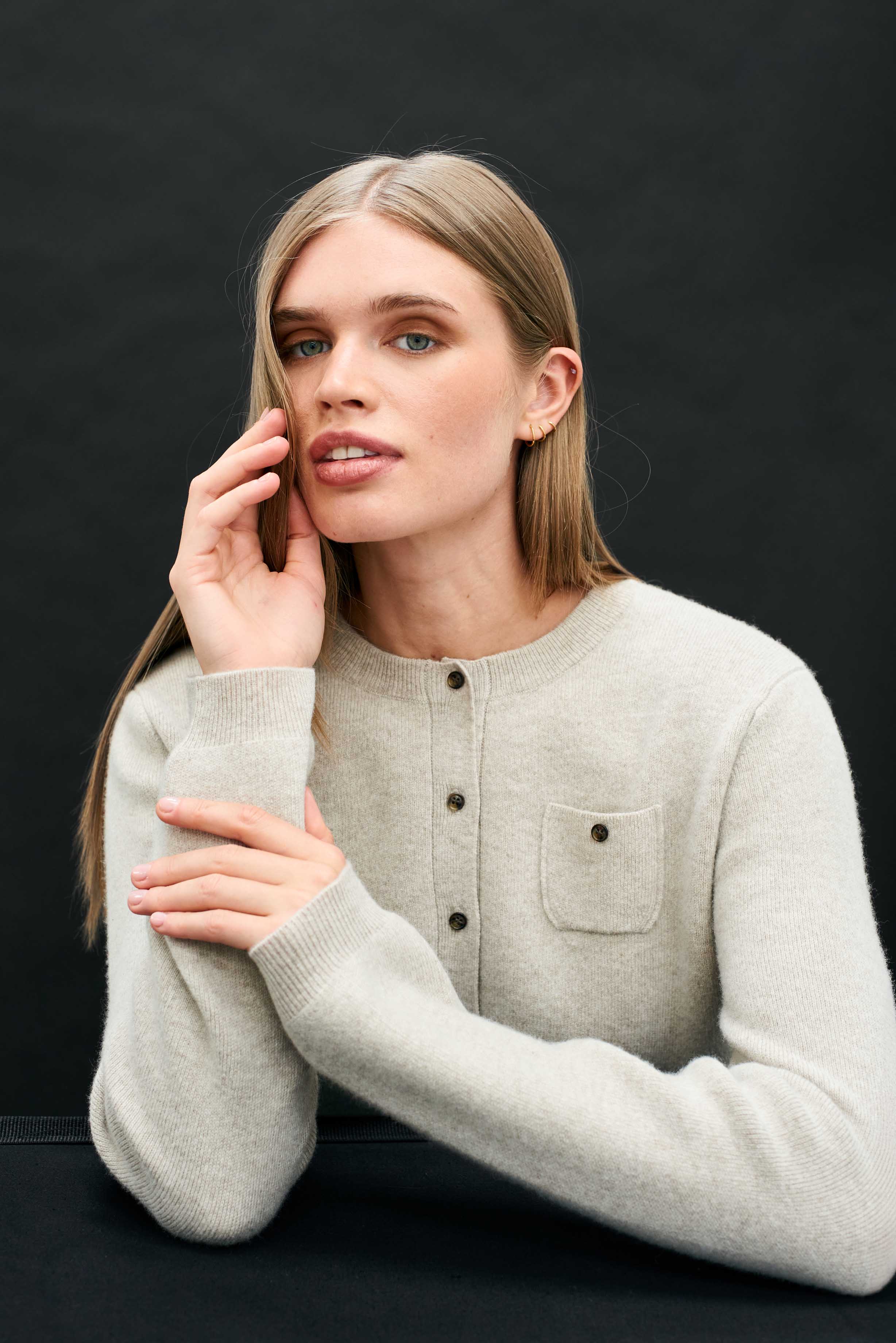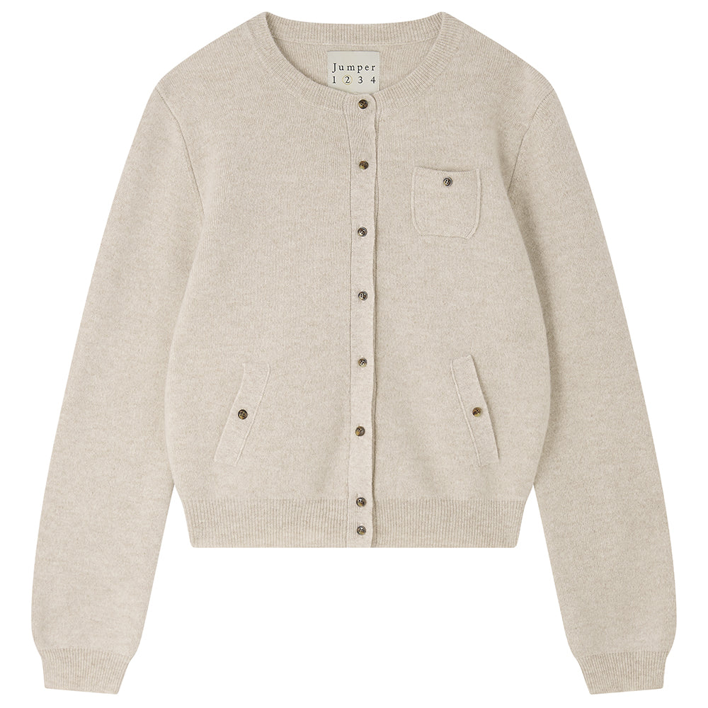 Jumper 1234 merino cardigan. Oatmeal merino wool crew neck cardigan with lots of pockets, all of which are useful! Available in 5 colours. It is a neat fit, still true to size, but size up if you want to wear it a little looser! This is the first time we've offered 100% merino, and even if we say so ourselves it's pretty amazing!