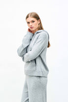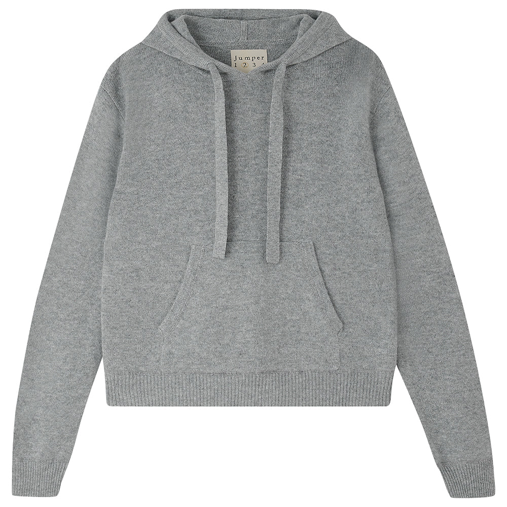 Jumper 1234 merino hoodie. Merino wool heavier weight hoodie in mid grey marl. Also available in oatmeal, black and moose and there's matching wide leg joggers too. Slightly oversize fit. This is the first time we've offered 100% merino, and even if we say so ourselves it's pretty amazing!