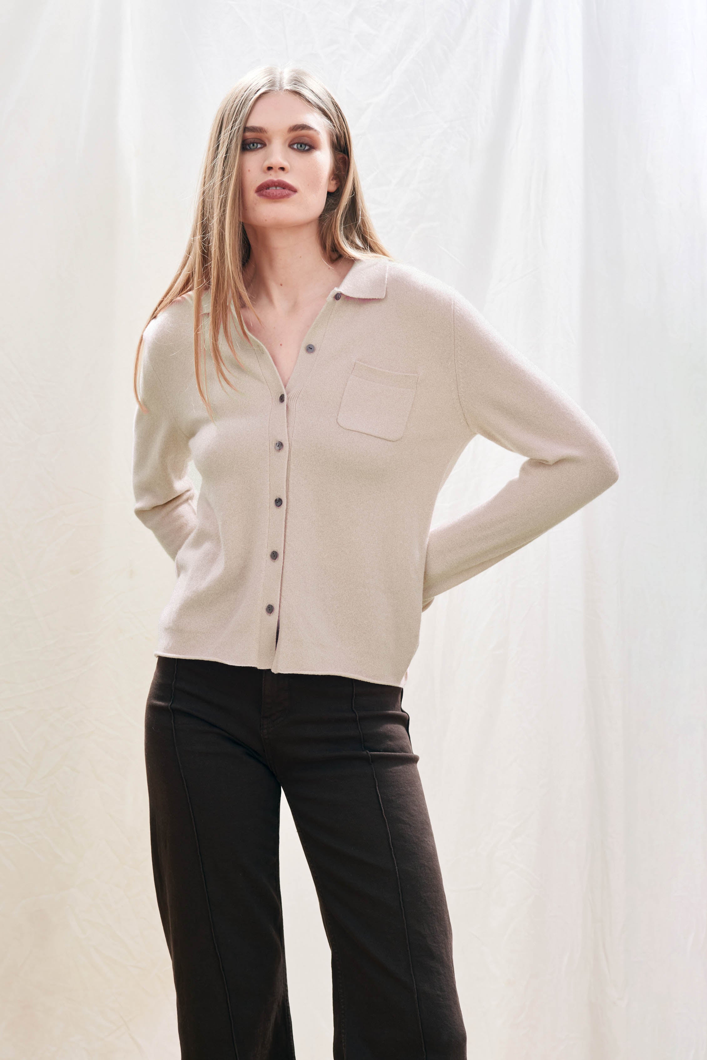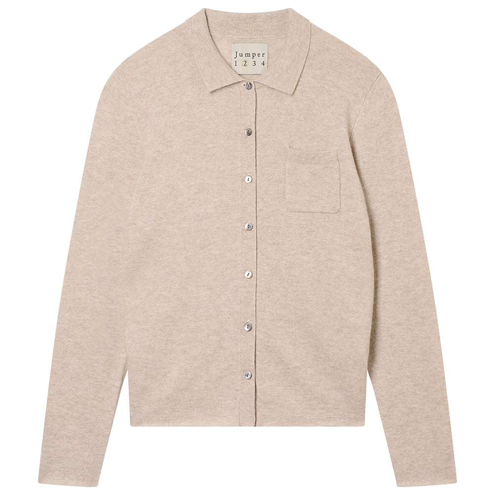 Jumper 1234 merino shirt. Merino wool knitted shirt in oatmeal. Slightly fitted 100% merino wool button through shirt with a pocket, available in 5 colours. This is the first time we've offered 100% merino, and even if we say so ourselves it's pretty amazing!